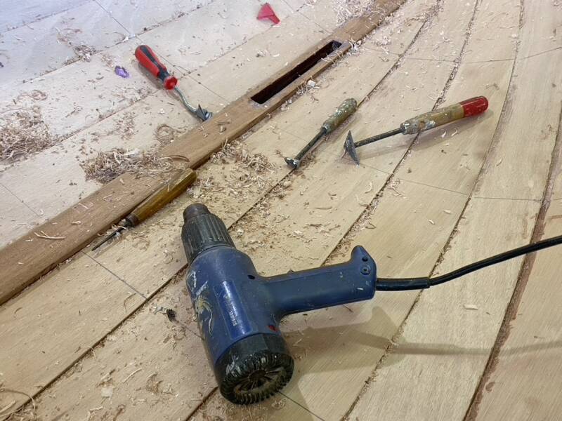 I cleaned the inside of the boat, removing epoxy residu with the hot air gun and some scrapers