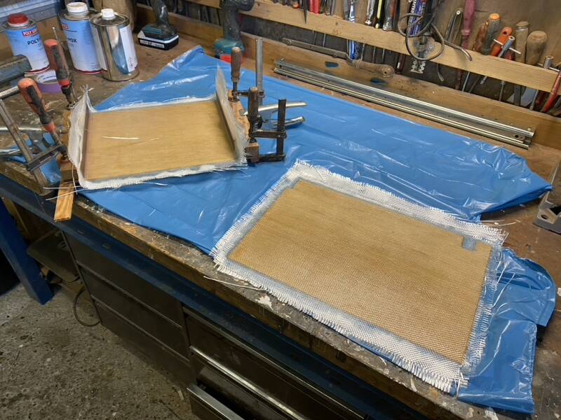 After three layers of epoxy I had to sand the inside again before applying the 2 pot polyurethane clear varnish with UV blocker.